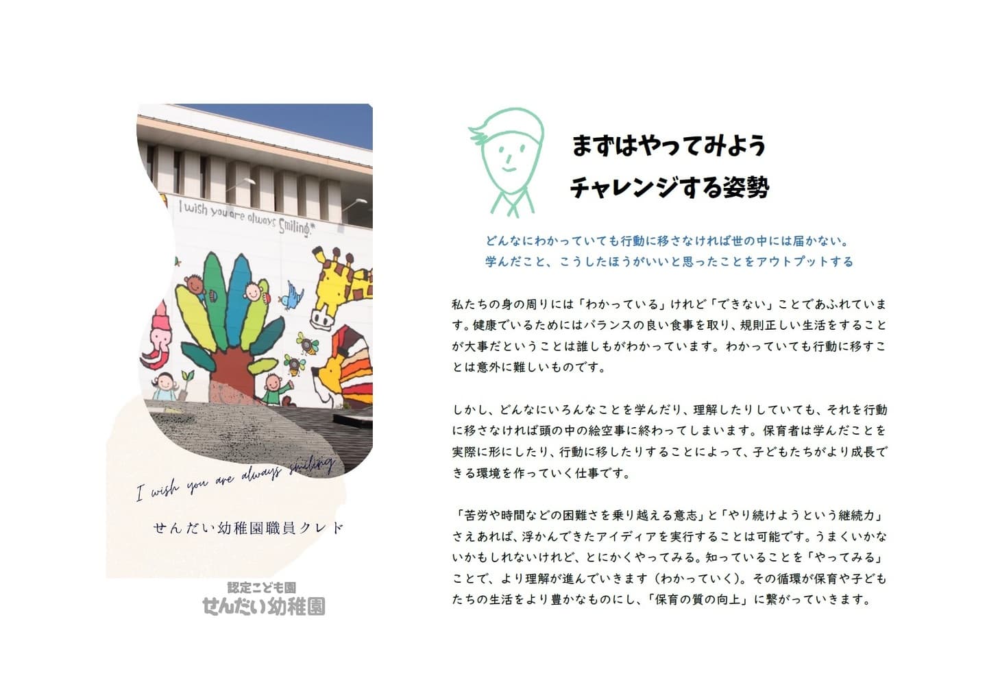 書いていることはただただ当たり前のことかもしれません。でも、当たり前のことを日々、丁寧にしていくということは意外にむずかしいことです。より良い当たり前を作っていこうという努力が、子どもたちの進む道をきっと明るくしていけるはずだと私たちは信じ、仕事に臨んでいます。